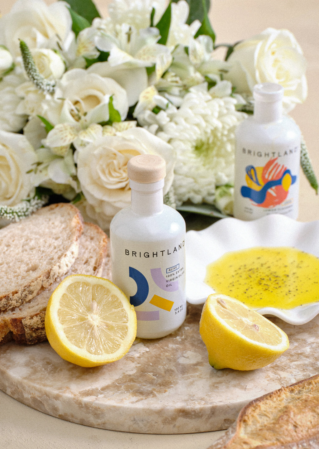 Fresh florals paired with Brightland’s bestselling olive oils for elevated gifting, made easy.