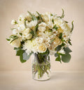 When words fall short, there are always flowers. This tranquil all-white bouquet embodies serenity and grace in the form of pure white blooms. Its elegant simplicity makes it a perfect gift for moments that call for quiet reflection, heartfelt sympathies, or a gesture of pure, unspoken kindness.