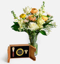 A celebration of indulgence and ease. The Caviar & Creme pairs ROE’s sustainably farmed White Sturgeon Caviar with The Hygge, our bouquet inspired by Scandinavian coziness. The arrangement’s warm earth tones and buttery blooms mirror ROE’s rich, briny flavor, crafted by hand in Northern California and presented in a luxe box with a Mother of Pearl spoon. A refined choice for holiday gatherings, intimate dinners, or as a distinctive gift that feels as special as the occasion itself.