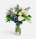 Wintery whites with vibrant greenery that sparkle like a frost-kissed morning. Minimal yet elegant, it’s the winter refresh bouquet that never tries too hard. A chic alternative to the bolder reds of the season; designed for the person who lives for the minimalist, clean aesthetic.