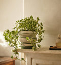 A living accent that feels like a sculptural art piece. This easy-to-care-for pothos plant is housed in a green-and-white marbled clay planter with layered ring detailing and a painted green base. Each vessel features natural variation, giving it depth and character. Modern, tactile, and designed to elevate everyday greenery.