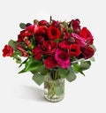 The Passion mixes pink anemones with deep red roses for a bouquet that carries real heat. The colors play off each other with that charged, almost-dangerous energy that turns interest into intention. Send it when you’re ready to stop hinting.