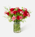 A cheerful mix of red and white blooms that channels holiday nostalgia with a modern flair. Think candy cane stripes reimagined as a floral statement—festive, fun, and instantly brightening any room. Featuring two-toned specialty carnations that mimic the stripes of a candy cane, it’s the bouquet equivalent of turning up your holiday playlist on repeat (before Thanksgiving).
