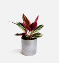 A Calathea Triostar with flirty pink variegation that reads like a subtle blush. Soft texture, big personality, very Valentine-coded. Easy to style, easier to love.