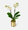 Includes:3" Double Spike White Orchid, 3.25" x 3.5" Gold Metal Footed Vessel