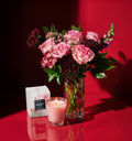 Roses, Mini Carnations, Snapdragon, Greenery paired with a NEST 8.1 oz Himalayan Salt & Rosewater Classic Candle