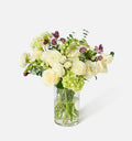 Comfort and sweetness in floral form. There's no other way to describe this delicious combination of creamy ivory roses, delicate mini-green hydrangea, and gestural snapdragons. Deeper accent florals lend this bouquet an artful touch of maturity, while the scent of eucalyptus soothes the soul. When you want to say "I hope you can feel my love even though I'm not with you right now," this bouquet says it exquisitely.