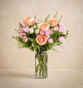 Includes:Roses, Garden Roses, Spray Roses, Mini Carnations, Greenery