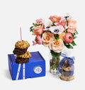 Looking for a gift that feels as timeless as it is indulgent? This gift set pairs our signature peach-and-pink bouquet, anchored by delicate white anemones, with eight of Levain’s legendary cookies. With their crispy edges, gooey centers, and four classic flavors—Chocolate Chip Walnut, Dark Chocolate Chocolate Chip, Oatmeal Raisin, and Dark Chocolate Peanut Butter Chip—this duo delivers equal parts warmth and wow.