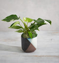 Includes:4" White Princess Philodendron, 4" x 4.25" Color-Blocked, Retro Inspired Ceramic Vessel